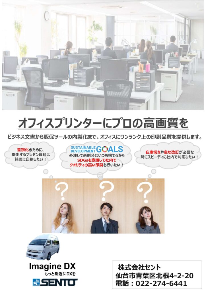デモカーとは、キヤノンの最新複合機と最新アプリをお客様が会社にいながらご覧いただけるサービスです。